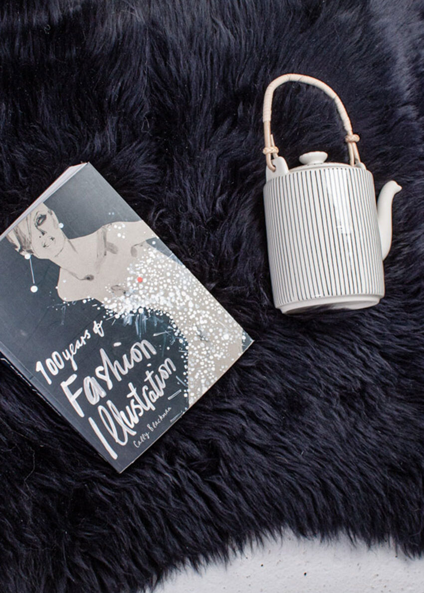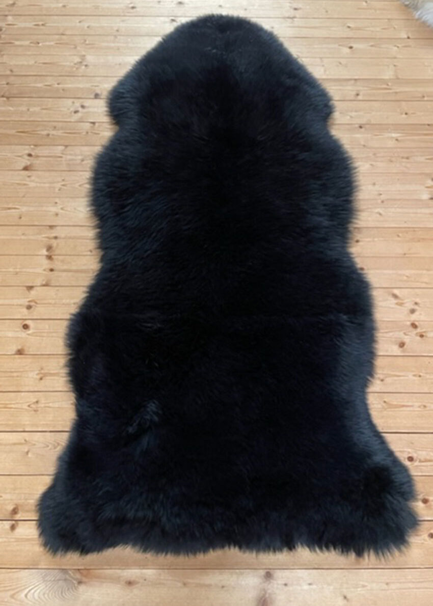 Ein wunderschönes 1,5 faches Lammfell vom Neuseeland-Austral Schaf in der Farbe schwarz. Unsere gefärbten Felle sind bunte Farbkleckse für Ihr Zuhause.