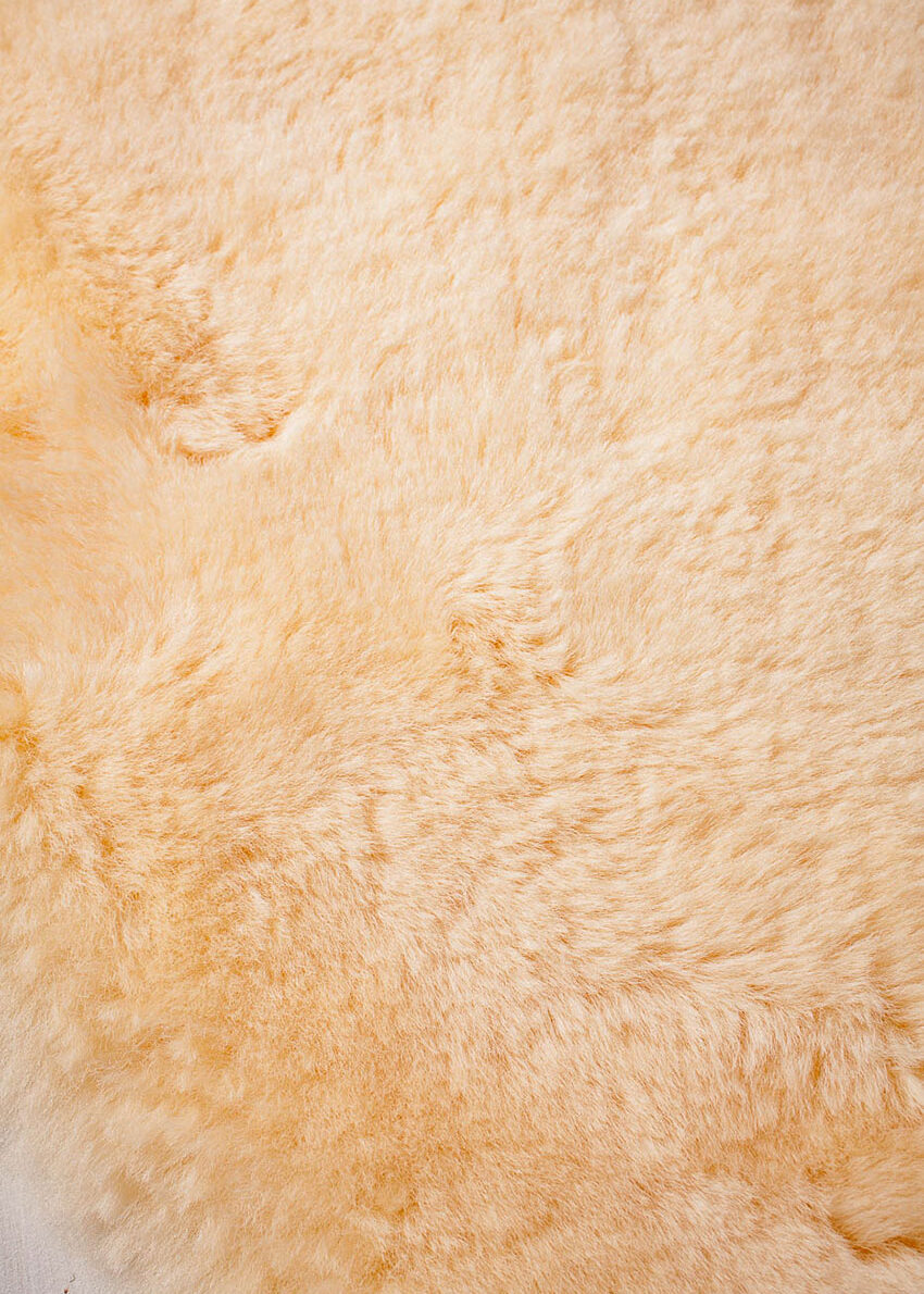 Seidiger Wollcharakter, nicht ganz so extrem dichtwollig wie unsere Standard-Babyfelle, waschbar, in Farbe Honig.