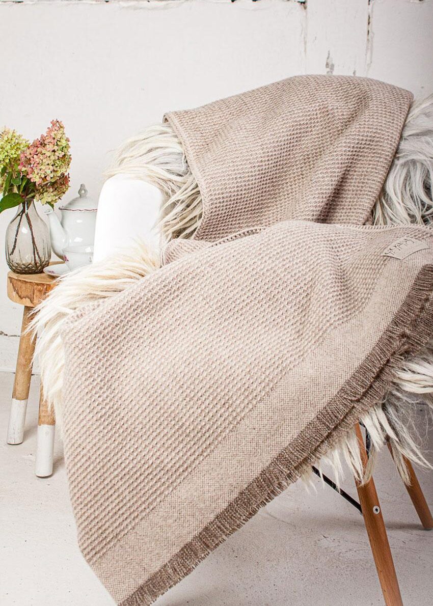 | Pflege | UNSER TIPP: Schurwolle verfügt über eine natürliche Selbstreinigungskraft an frischer Luft. Damit Sie langfristig Freude an Ihrem Decke haben,empfehlen wir, die Decke möglichst regelmäßig zu lüften. Leichte Verschmutzungen lassen sich lauwarm mit einem Schwamm und einer milden Seifenlauge ( vorzugsweise Schmierseife, Neutralseife oder ein mildes Haarshampoo) ausreiben. Bei starker Verschmutzung können Sie Ihre Decke in einer guten chemischen Reinigung reinigen lassen. Sollten Sie noch Fragen haben, wir stehen gern zur Verfügung! |