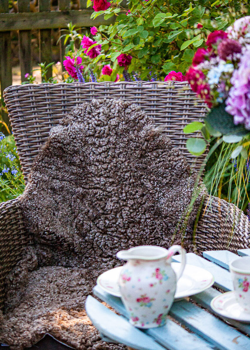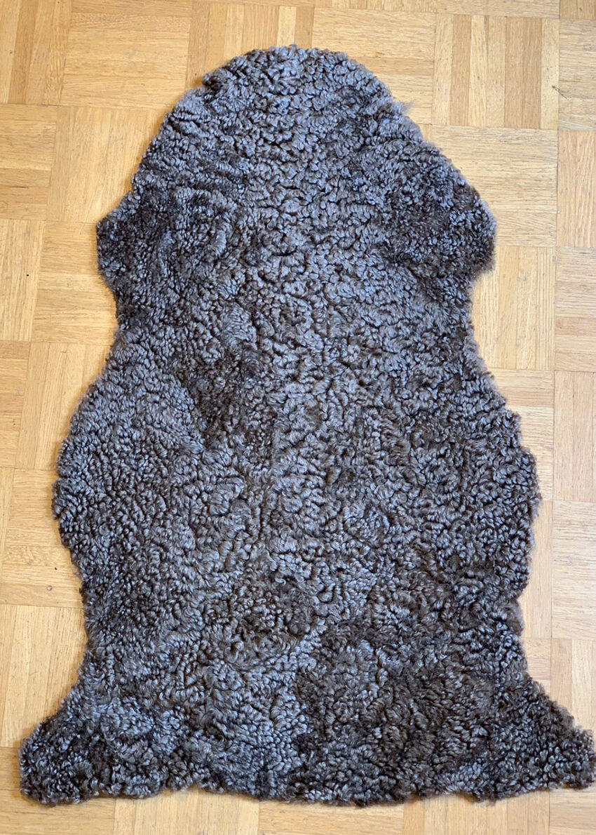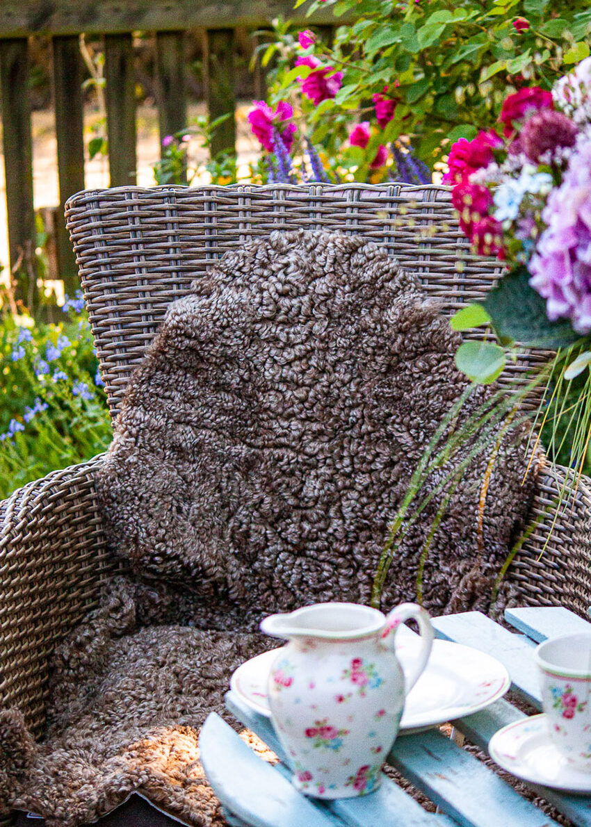 Ein echtes Curly Lammfell, ideal für eine lange Gartenbank oder Liege sehr strapazierfähig und durabel, grau, weiches Wollvliess Naturlocke, Wollhöhe ca. 2 cm. Unsere Curly-Lammfelle gibt es in zwei Größen: M (90 x 60 cm) und L (120 x 65 /70 cm) und vier Standardfarben. Dunkeltaupe/braun, leinen, grau-saphir und hellgrau.
