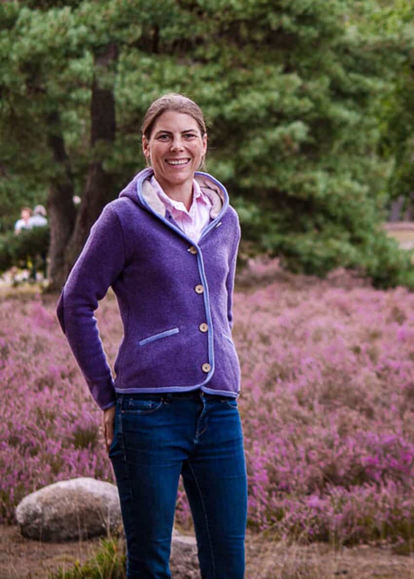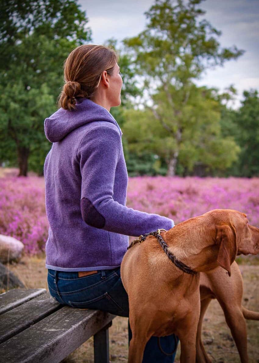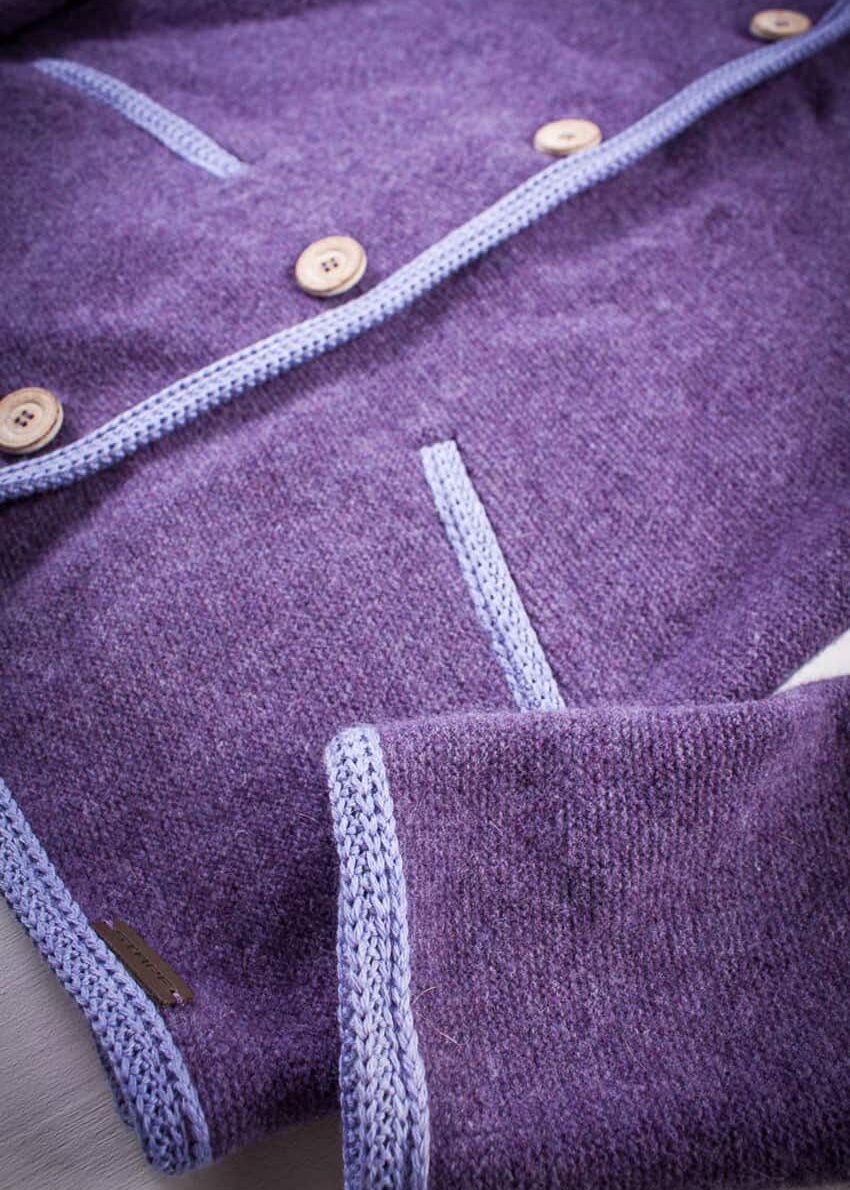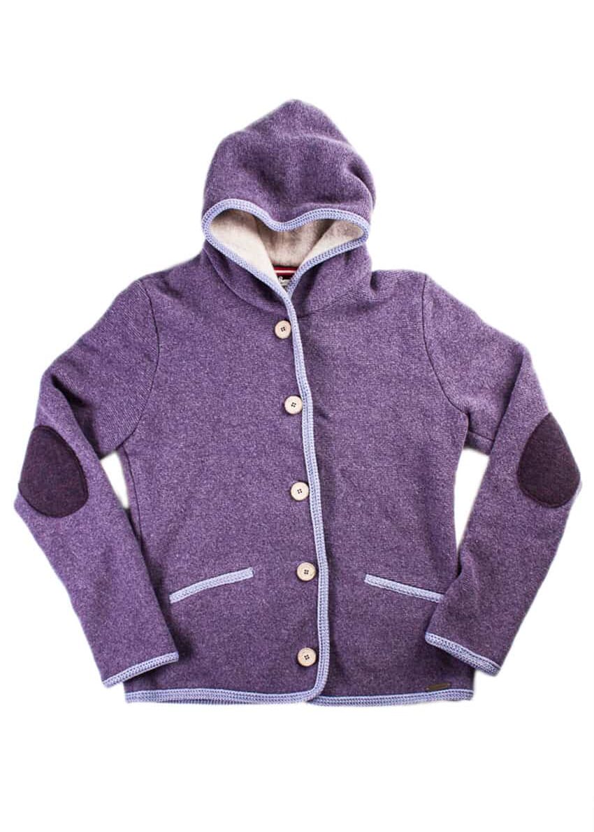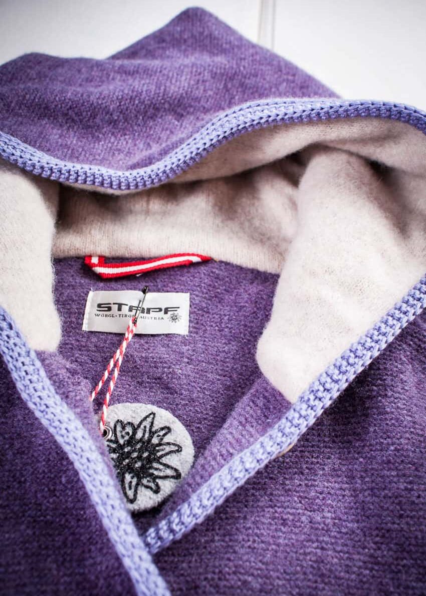 Janker mit Kapuze von Stapf aus Tirol/Österreich in Veilchen-Lila mit modernen Arm-Patches