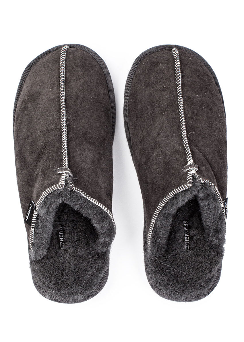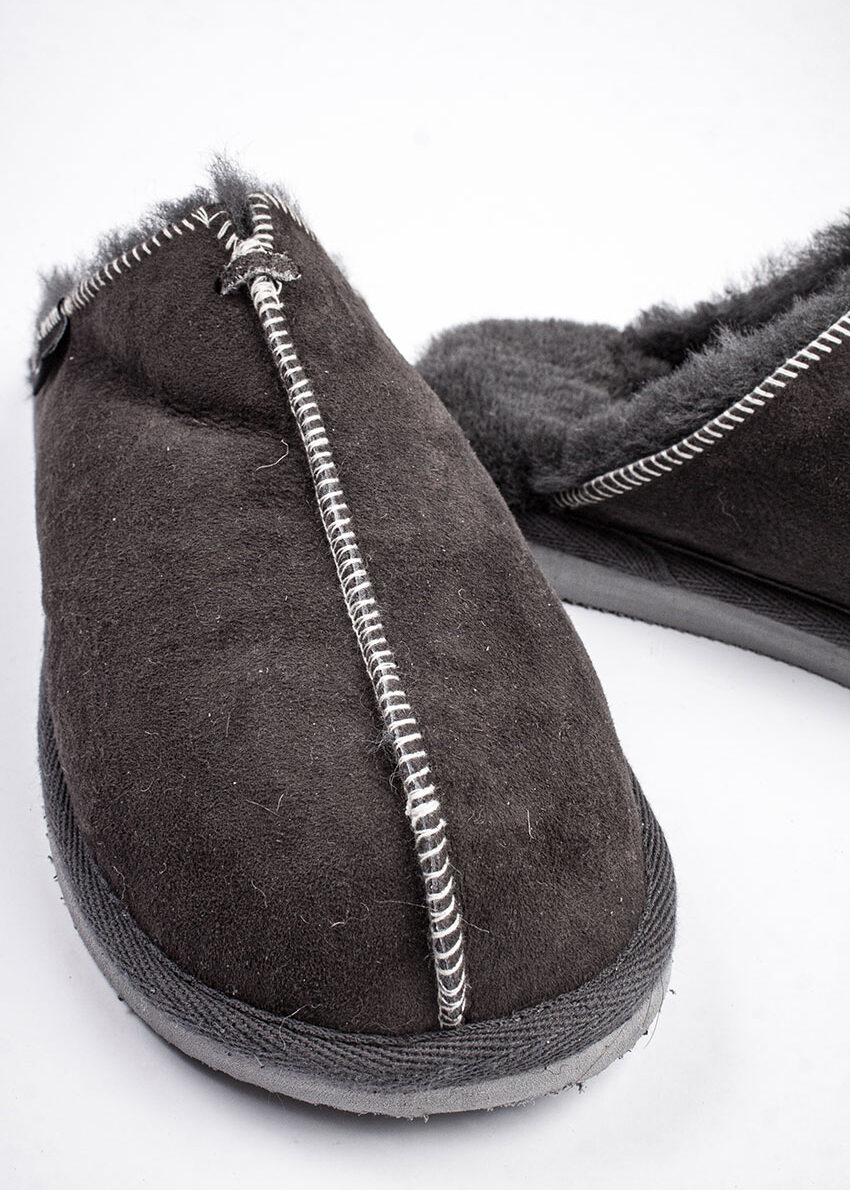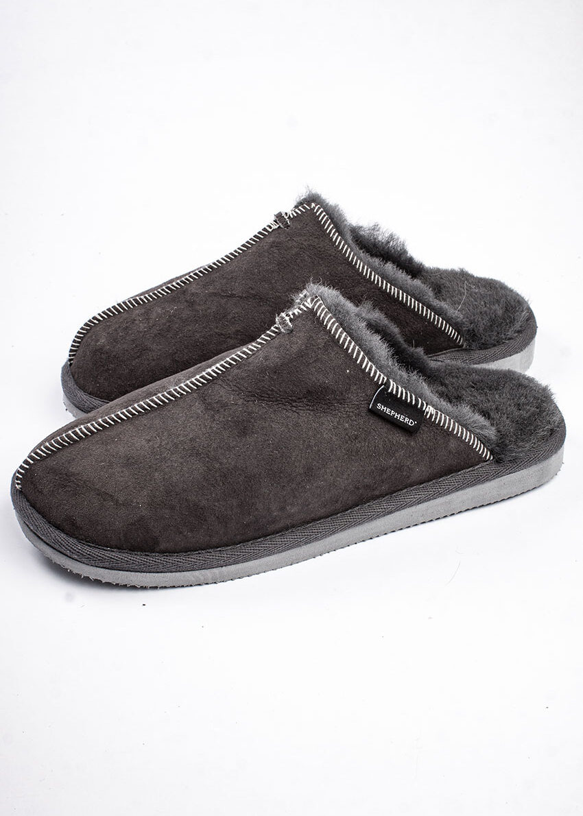 Sehr bequemer Lammfell-Pantoffel „Karla“ von Shepherd für Damen aus original gewachsenem Lammfell, mit fester Sohle und Fellrand.