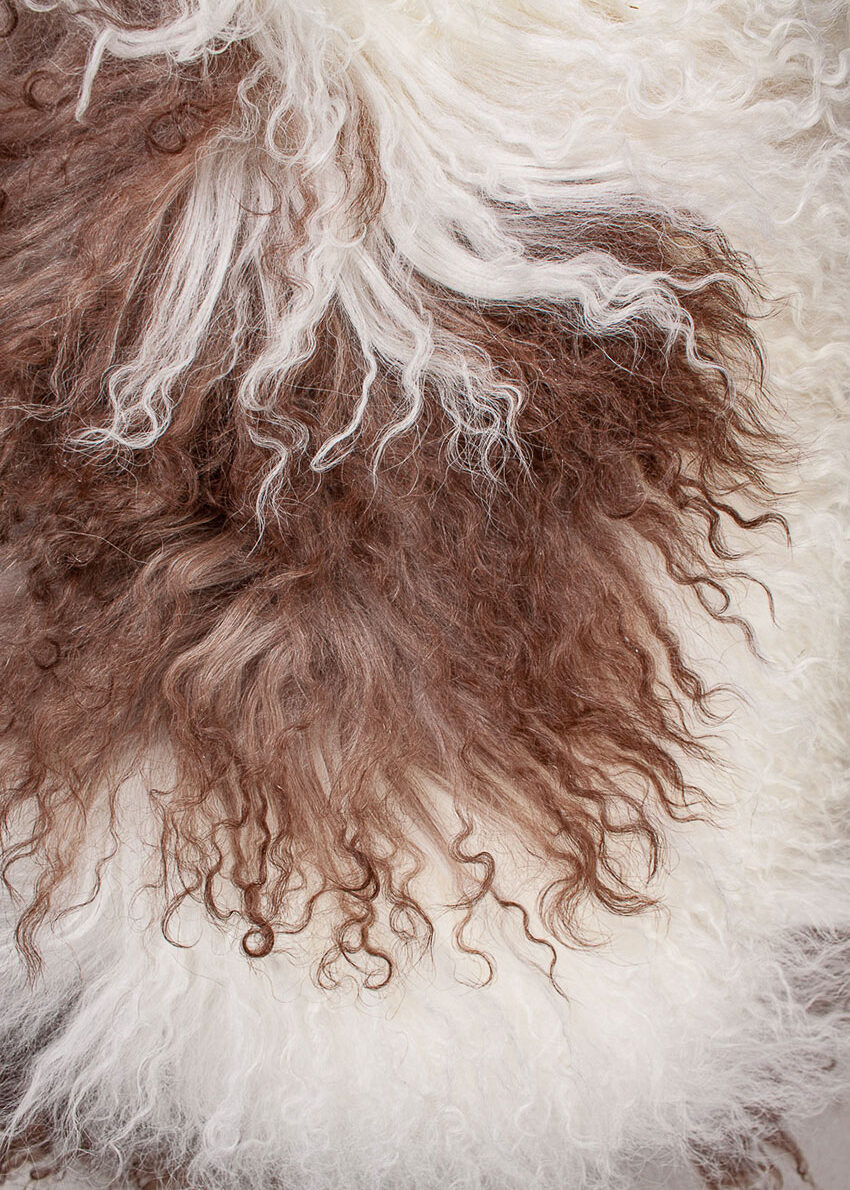 Tibet-Lammfell-Kissen, lang, gescheckt braun