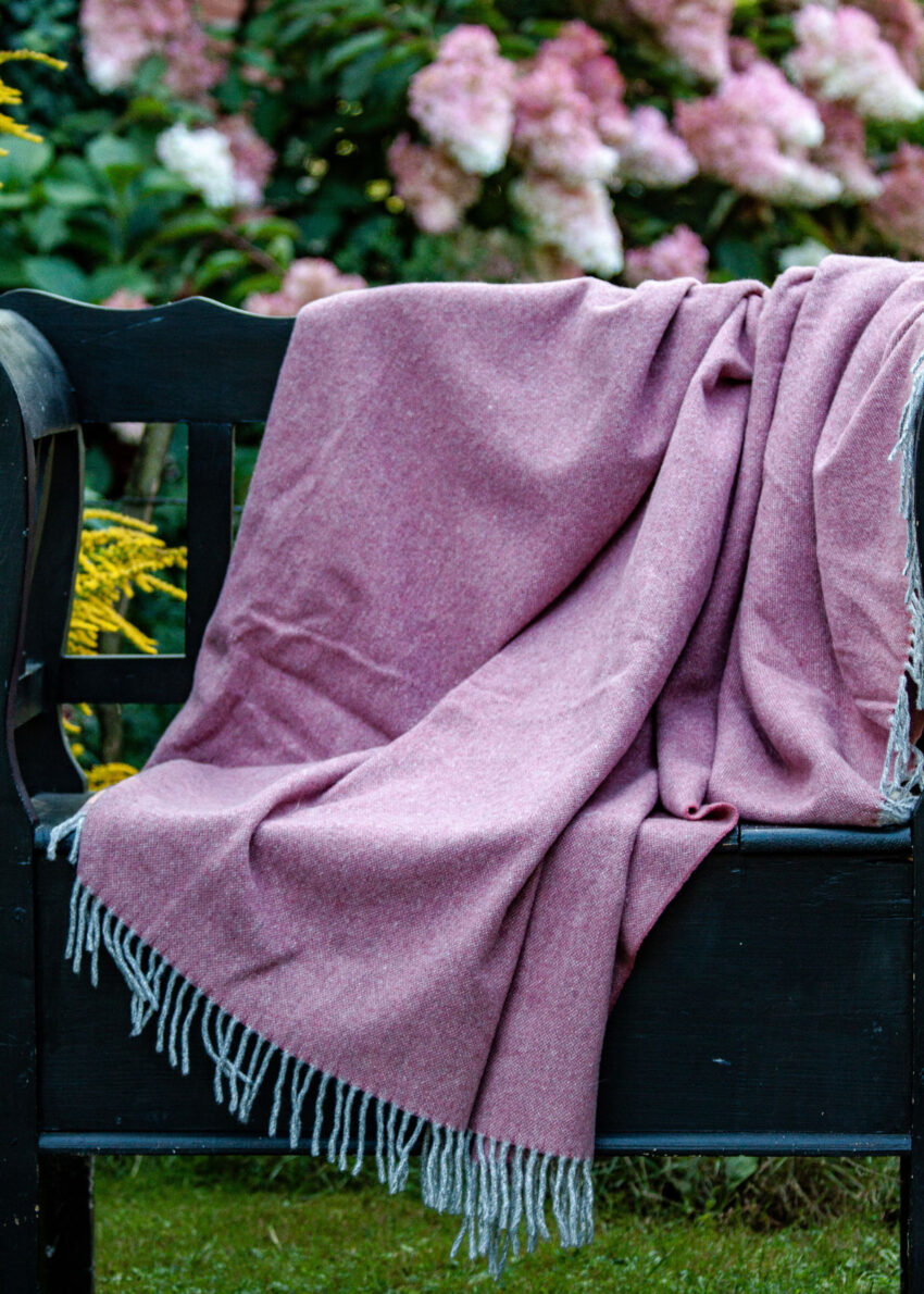 Wolldecke „Davos“ 100% Merinowolle Fransen, rosa